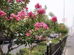 Landscape Uses:Border, Container, Massing, Pollard, Standard, Specimen, Street tree. Succeeds in most well-drained soils in a sunny sheltered position[184, 200]. Succeeds in a hot dry position. Succeeds in soils low in nutrients[200]. Dislikes very alkaline soils[202]. Dormant plants are hardy to about -10°c if the wood is well ripened[184]. They require very hot and humid summers and preferably the protection of a south facing wall if they are to flower in Britain[182, 260]. Plants are hardy in a very sunny position in southern England but they only flower in consistently warm summers[11]. Plants are much hardier when the wood is thoroughly ripened by the sun[166, 200]. A very ornamental plant[1], there are many named varieties[200]. Flowers are produced in broad panicles on the tips of the current years growth[219]. Any pruning is best carried out in the spring in order to encourage new growth[219]. Young plants grow fairly quickly and will often flower in their first year after planting out[219]. Plants do not transplant well and should be moved with a large rootball[200]. This species is notably resistant to honey fungus[200]. Special Features: