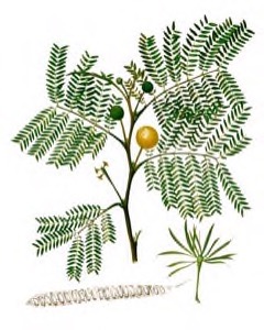 Gum arises from the stems under ill-defined conditions of injury and disease or from sterile hybrids, especially Leucaena leucocephala x Leucaena esculenta. The gum has been analysed and found similar to gum arabic, and of potential commercial value[303 ]. Red, brown and black dyes are extracted from the pods, leaves and bark[303 ]. The dried seeds are widely used for ornamentation[303 ]. The heartwoos is a ight reddish-brown; the sapwood pale yellow. It is medium textured, close grained. The wood is strong, hard and heavy (about 800 kg/m), of medium density. It is easily workable for a wide variety of carpentry purposes and dries without splitting or checking. Sawn timber, mine props, furniture and parquet flooring are among increasingly popular uses. However, the use of L. Leucocephala for sawn timber is greatly limited by its generally small dimensions (usually not greater than 30cm diameter), its branchiness, which limits lengths of clear bole available and means wood is often knotty, and its high proportion of juvenile wood. Nevertheless, there is growing use of small-dimension sawn wood in a number of industries such as flooring, which might include L. Leucocephala in the future. Poles are used to prop bananas and as a support for yams, pepper and other vines. Use of short-rotation L. Leucocephala for poles is limited by their lack of durability and susceptibility to attack by termites and woodborers[303 ]. The wood is commonly pulped for its fibre, used to make paper[303 ]. The fibre values are similar to those of other tropical hardwoods, and it produces paper with good printability but low tearing and folding strength; the wood-pulp strength is greater than that of most hardwoods, with almost 50% greater ring crush. Its pulping properties are suitable for both paper and rayon production. Also used for particleboard production[303 ]. An excellent firewood species with a specific gravity of 0.45-0.55 and a high calorific value of 4600 cal/kg[303 ]. The wood burns steadily with little smoke, few sparks and produces less than 1% ash. The tree makes excellent charcoal with a heating value of 29 mJ/kg and good recovery values (25-30%)[303 ]. Addition of the ground wood to fuel oil for diesel engines was found to involve no harmful agents in the ash[303 ]. 1. Nectary - Flowers rich in nectar and pollen: