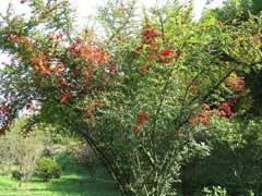 Prefers a good well-drained, moisture-retentive loamy soil[1, 200]. Succeeds in any soil that is warm and not very heavy[11]. Another report says that it grows well in heavy clay soils. Succeeds on chalky soils[108]. Succeeds in sun or part shade[200] and also on a shady wall[28, 49], though it does not fruit so well in a shady position[200]. Tolerates atmospheric pollution and reasonable exposure[200]. A very ornamental plant[1], there are a number of named varieties[11, 200]. Susceptible to scab and fireblight[11], especially when grown on acid sandy soils[182]. This species, especially the cultivar 'Lelandii', is notably resistant to honey fungus[200]. Intolerant of root disturbance except when young[11]. A good bee plant[108]. Birds are particularly attracted to the fruit of this plant[200]. Special Features:Not North American native, Attractive flowers or blooms.