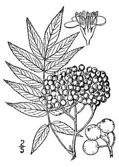 Sorbus americana is a deciduous Tree growing to 10 m (32ft) by 7 m (23ft) at a slow rate.