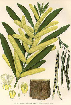 Flowers - cooked[144]. Rich in pollen, they are often used in fritters. The flowers have a violet-like fragrance[245]. Seed - roasted[2, 46, 61, 105]. Starchy[177]. Rather small and fiddly to gather[K]. Acacia seeds are highly nutritious and contain approx 26% protein, 26% available carbohydrate, 32% fibre and 9% fat[278]. The fat content is higher than most legumes with the aril providing the bulk of fatty acids present[278]. These fatty acids are largely unsaturated which is a distinct health advantage although it presents storage problems as such fats readily oxidise[278]. The mean total carbohydrate content of 55.8 + 13.7% is lower than that of lentils, but higher than that of soybeans while the mean fibre content of 32.3 + 14.3% is higher than that of other legumes such as lentils with a level of 11.7%[278]. The energy content is high in all species tested, averaging 1480+270 kJ per 100g[278]. Wattle seeds are low glycaemic index foods. The starch is digested and absorbed very slowly, producing a small, but sustained rise in blood glucose and so delaying the onset of exhaustion in prolonged exercise[278]. Seedpods - roasted[177]. The pods are up to 10cm long[219].