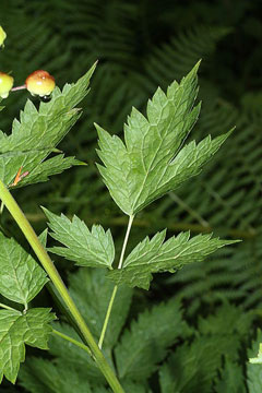 Tolerates most conditions[233], but prefers a humus-rich moist soil in light shade[200, 233] doing well amongst shrubs and in light woods[1]. Also succeeds in denser shade[187]. Plants are hardy to at least -20°c[187]. A very ornamental plant[1]. Actaea rubra is part of a circumboreal complex and is very similar to the black-fruited European species A . spicata (L.) with which it is sometimes considered conspecific[270]. The western North American plants of A . rubra have been called A . arguta and were distinguished on the basis of their smaller berries, more pubescent leaves, and narrow, more dissected leaflets. Those distinctions, however, are weak; specimens from the West often have fruits and leaves similar to those of plants from the East[270]. A greedy plant, inhibiting the growth of nearby plants, especially legumes[54].