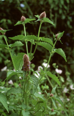Korean mint is commonly used in Chinese herbalism, where it is considered to be one of the 50 fundamental herbs[218]. Considered to be a "warming" herb, it is used in situations where there is "dampness" within the digestive system, resulting in poor digestion and reduced vitality[254]. The leaves and stems are antibacterial, antifungal, aromatic, carminative, diaphoretic, febrifuge and stomachic[147, 176, 218, 238, 279]. They are used internally to improve the appetite and strengthen the digestive system[238], they relieve symptoms such as abdominal bloating, indigestion, nausea and vomiting[254]. They are also used to treat morning sickness[254]. The leaves are also used in the treatment of chest congestion, diarrhoea and headaches[218]. An infusion of the leaves is used in the treatment of angina pains[222]. The plant is used as a folk remedy for cancer, extracts of the plant have shown anticancer activity[218].