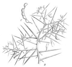 Requires a sunny position in a well-drained light or medium soil. Plants are not very hardy in Britain, they can be grown outdoors in the summer but require protection in the winter[1]. The stems of the plant are covered in sharp spines[245]. Like the closely related gorse (Ulex europaea) the flowers have a pineapple scent[245]. (A slightly strange report because the gorse flowers have a strong coconut fragrance[K].) This species has a symbiotic relationship with certain soil bacteria, these bacteria form nodules on the roots and fix atmospheric nitrogen. Some of this nitrogen is utilized by the growing plant but some can also be used by other plants growing nearby[200].