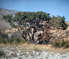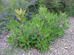 Texas madrone is a smaller evergreen tree or shrub, found in the southwestern U.S. and Mexico, including Texas, New Mexico, and the Guadalupe Mountains. It differs from Arizona madrone by having more rounded leaves with U-shaped bases.