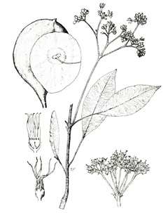 Aspidosperma album is a 10-30 m tall evergreen tree with a 30-60 cm bole diameter. It is commonly harvested from the wild for medicinal purposes and high class timber called Araracanga. The bark has antifungal properties. It is used as an astringent and to reduce fever. Diarrhoea, fevers, and malaria can be treated also by using bark decoction. For dermatosis, juice from the macerated inner bark can be applied to affected areas. The wood of A. album is used for heavy construction. It is resistant to fungi, dry wood borers, and termites.