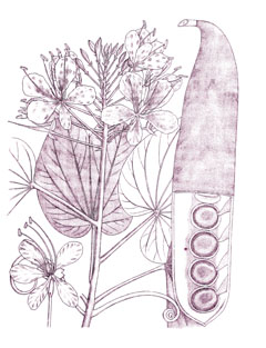 Malu creeper or Bauhinia vahlii is a fast-growing climbing shrub up to 30 m long and 20 cm in diameter. It can grow into tops of the trees. The seeds are tonic and aphrodisiac and the leaves are demulcent and mucilaginous. The seeds can be eaten raw or fried and cooked as a pulse. The inner bark is a source of fibre used in making ropes. The stems are used for basketry, matting, and wickerwork. The leaves are used as a thatch. Other Names:Adda, Bhorla, Chambul, Jallur, Mahulan, Maljhan, Malu, Moharain, Namarain, Sihar.