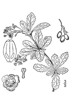 Berberine, universally present in rhizomes of Berberis species, has marked antibacterial effects. Since it is not appreciably absorbed by the body, it is used orally in the treatment of various enteric infections, especially bacterial dysentery[218]. It should not be used with Glycyrrhiza species (Liquorice) because this nullifies the effects of the berberine[218]. Berberine has also shown antitumour activity[218]. A tea made from the roots is used in the treatment of fevers and diarrhoea[222].