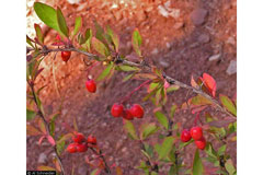 The species is valued in native plant gardens, erosion control, and wildlife plantings for its adaptability and resilience. A yellow dye is obtained from the root. The shrub’s bright autumn foliage, yellow spring flowers, and red fruit clusters provide multi-season ornamental appeal. It performs well in xeric landscapes and native restoration plantings, offering both aesthetic and ecological value. Ecology & Wildlife: This shrub plays an important role in montane ecosystems, providing early-season pollen and nectar for native bees and later-season berries for birds, foxes, and small mammals. Its thorny branches offer protective nesting habitat for small birds. It coexists with ponderosa pine, Gambel oak, and chokecherry in open woodland ecotones.