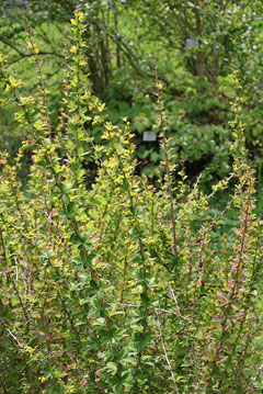 Berberis jaeschkeana is a deciduous Shrub growing to 0.8 m (2ft 7in). The species is hermaphrodite (has both male and female organs) and is pollinated by Insects. The plant is self-fertile.