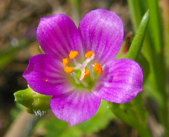 Identification & Habit: Desert redmaids is a low, sprawling or ascending annual, typically 2–20 cm tall, with slender, fleshy, reddish stems. The leaves are simple, alternate, oblong to lanceolate, entire-edged, and somewhat succulent. The plant often takes on vivid red, orange, or yellow tones with age, especially under full sun or drought stress. Flowers are showy, magenta to purplish-pink (occasionally white), borne in loose racemes, each with five free petals and two persistent, ciliate sepals. Fruits are three-valved capsules that split open from the top downward, releasing 5–35 small, shiny black seeds per fruit. After fruiting, the plant rapidly desiccates, leaving behind light-brown skeletal stems. Pollination is primarily by small bees, flies, and solitary pollinators drawn to the bright petals and pollen; however, the flowers are also partially self-fertile, ensuring seed set even when pollinator activity is low in arid environments.Prefers a hot sunny situation on a poor dry sandy soil[200]. This species is not very hardy in Britain, but it should be possible to grow it as a tender annual in this country. Plants are intolerant of root disturbance, they are best treated as half-hardy annuals and sown in situ in late spring[1]. In frosty climates this species can become a self-sowing annual, the seed germinating in spring[157]. Growing Conditions: This species thrives in sandy or gravelly soils with good drainage, often in open desert flats, rocky washes, or disturbed areas. It prefers full sun, tolerates drought, and requires little moisture once established. Desert redmaids is well adapted to nutrient-poor, alkaline soils and can even colonize compacted or disturbed sites. It performs best with occasional light rainfall or supplemental irrigation in cultivation. Hardiness is suitable for USDA Zones 6–10, with optimal germination occurring in cool, moist conditions and rapid growth during mild spring weather. Habitat & Range: Native across western North America, desert redmaids occur from southern Oregon through California, Nevada, Arizona, New Mexico, and Baja California. They inhabit sandy plains, alluvial fans, desert washes, mesas, and grassland transition zones, typically below 1,500 meters elevation. In favorable years, they can form bright patches of color across open desert flats during early spring. Size & Landscape Performance: Mature plants are 2–20 cm tall and 5–25 cm wide, forming small, spreading mats or upright tufts. Their vivid flowering and colorful foliage make them visually appealing as part of native wildflower mixes or low-water xeriscape plantings. The short-lived plants reseed easily, germinating with seasonal rains. Cultivation (Horticulture): Desert redmaids is easily grown from seed in sandy, well-drained soil and full sun. It prefers mild winter or spring weather for germination and growth. In gardens, it performs well in rockeries, native annual meadows, and low-desert pollinator patches. Once established, it requires minimal care. Overwatering or heavy soils can cause rot. It self-seeds readily but is not invasive, as seedlings depend on rainfall timing. Pests & Problems: Few pests affect desert redmaids. In overly moist conditions, root rot and fungal damping-off may occur in cultivation. Aphids or flea beetles occasionally feed on seedlings but rarely cause significant damage. In the wild, the plant’s short lifespan minimizes pest buildup. Cultivar/Selection Notes