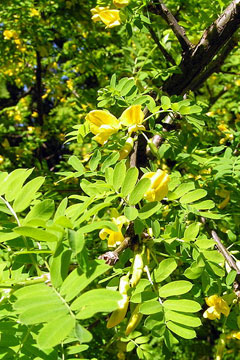 Succeeds in most well-drained soils, preferring full sun and a light sandy dry or well-drained soil[1, 11, 200]. Tolerates very alkaline soils[202]. Does not require a rich soil[1, 11, 108], succeeding on marginal land[160]. Established plants are drought resistant[160]. Fast growing[188]. This species is hardy to at least -30°c[184], it prefers a continental climate with hot summers and cold winters so it does not grow so well in the milder western half of Britain[200]. This species is closely related to C. arborescens, differing in the longer teeth of the calyx and in the downy ovary and young fruit[11]. It can probably be used in all the ways C. arborescens is used and therefore has an excellent potential for human food.[K]. A good bee plant[74]. Plants in this genus are notably resistant to honey fungus[200]. This species has a symbiotic relationship with certain soil bacteria, these bacteria form nodules on the roots and fix atmospheric nitrogen. Some of this nitrogen is utilized by the growing plant but some can also be used by other plants growing nearby[200].