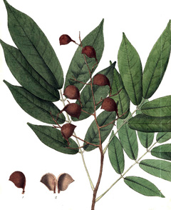 Found in Northern South America, Copaifera guyanensis is an evergreen tree that grows up to 40 m in height. The trunk has a thick base. The resin obtained from the trunk is used as food additive and as flavouring agent in food and beverages. It is also used widely medicinally for its antibacterial, antifungal, anti-inflammatory, disinfectant, diuretic, and astringent properties. The resin may be taken internally against respiratory, urinary and reproductive systems conditions or applied externally for various skin ailments. It can also be gargled to cure sore throat and tonsillitis. The resin is also used in perfumery, varnishes and lacquers, and as substitute for diesel oil. The wood is used in light carpentry, interior panelling and joinery, flooring, boxes and crates, furniture, veneer, and fibre boards. Found In: South America - Brazil.