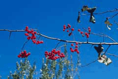 Fruit - raw or cooked[62]. A dry flesh[43]. Very small, about 5mm in diameter, it often hangs on the tree all winter[200]. There are up to five fairly large seeds in the centre of the fruit, these often stick together and so the effect is of eating a cherry-like fruit with a single seed[K].