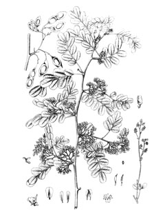 Seed extracted from pods germinate readily without pre-treatment[ 303 ]. They should be kept in the shade for 2 weeks after sowing, but can then be placed in full sun[ 299 ]. They germinate 8 - 20 days after sowing, with a germination rate of 50 - 60%[ 299 ]. Although pre-treatment of seeds is not necessary, soaking the seeds in water accelerates germination[ 299 ]. Experimental work in Tanzania suggests that survival and growth are improved by planting 2-year-old stumps that are 14 cm long, comprising 12 cm of root and 2 cm of shoot[ 303 ]. These should be planted in the early or middle part of the rainy season, followed by intensive weeding. Potted seedlings may also be used, but they tend to grow more slowly. When seedlings are raised in pots, frequent root pruning is mandatory[ 303 ]. Delayed pruning leads to seedling shock[ 303 ]. Like many species within the family Fabaceae, once they have been dried for storage the seeds of this species may benefit from scarification before sowing in order to speed up germination. This can usually be done by pouring a small amount of nearly boiling water on the seeds (being careful not to cook them!) and then soaking them for 12 - 24 hours in warm water. By this time they should have imbibed moisture and swollen - if they have not, then carefully make a nick in the seedcoat (being careful not to damage the embryo) and soak for a further 12 hours before sowing[ K ]. Seed storage behaviour is orthodox; viability can be maintained for several years in hermetic storage at 3?c with 9 - 12% mc[ 303 ].