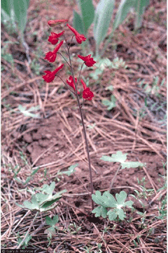 Delphinium nudicaule is a PERENNIAL growing to 0.3 m (1ft) by 0.3 m (1ft in) at a medium rate.