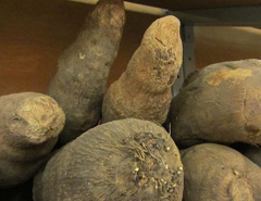 Root - cooked[ 300 ]. Boiled or baked, some forms have an excellent flavour[ 300 ]. The cooked flesh is smooth in texture, attractive and of an unusually rich flavour that is readily appreciated and sufficiently moist in the mouth[ 301 ]. Roots are about 15 - 20cm long and 6 - 8cm in diameter[ 300 ]. The tuber is about 38% waxy starch that lacks amylose and has potential uses as a binder and thickener in food processing.