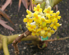Edgeworthia chrysantha is a deciduous Shrub growing to 2 m (6ft) by 2 m (6ft).