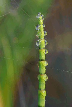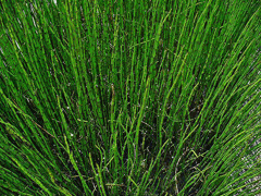 Equisetum species - horsetail family are Creeping, perenial, Branching rootstocks, rooted at the nodes. The Arial stems may be annual or Perennial, are cylindrical, fluted, simple or with whorled branches at the jointed nodes. The internodes are usually hollow. The Surfaces of the stems are covered with Silica. The Cones are terminal.