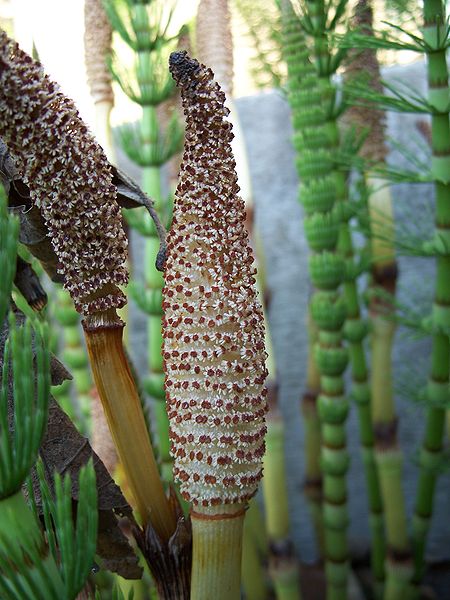 Equisetum telmateia is a PERENNIAL growing to 2 m (6ft 7in).