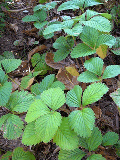 Fragaria is a genus of prostrate to small flowering plants in the rose family commonly known as strawberries for their edible fruits. The taste of strawberries varies by species and cultivar, ranging from sweet to tart. Strawberries have vitamin C and half as much iron as spinach. Many species of strawberry are excellent food forest plants tolerating moderate shade and are good ground covers. All Fragaria species mentioned provide food or shelter for beneficial birds or other vertebrates, are generalist nectary plants and are dynamic accumulators. Harvest fruit in summer and autumn. Leaves through the year. Fruit production begins three months after planting and may continue for up to 5 years. Some strawberry varieties are self-fertile, while others require cross-pollination for optimal fruit production.
