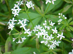 Sweet woodruff was widely used in herbal medicine during the Middle Ages, gaining a reputation as an external application to wounds and cuts and also taken internally in the treatment of digestive and liver problems[4]. In current day herbalism it is valued mainly for its tonic, diuretic and anti-inflammatory affect[254]. The leaves are antispasmodic, cardiac, diaphoretic, diuretic, sedative[9, 13, 21, 200]. An infusion is used in the treatment of insomnia and nervous tension, varicose veins, biliary obstruction, hepatitis and jaundice[9, 238]. The plant is harvested just before or as it comes into flower and can be dried for later use[9]. One report says that it should be used with caution[21] whilst another says that it is entirely safe[9]. Excessive doses can produce dizziness and symptoms of poisoning[268]. The dried plant contains coumarins and these act to prevent the clotting of blood - though in excessive doses it can cause internal bleeding[254]. The plant is grown commercially as a source of coumarin, used to make an anticoagulant drug[268]. Do not use this remedy if you are taking conventional medicine for circulatory problems or if you are pregnant[254]. Both Asperuloside (a terpenoid) and Coumarin (a benzopyrone) occur in some species of Galium. Asperuloside can be converted into prostaglandins (hormone-like compounds that stimulate the uterus and affect blood vessels), making the genus of great interest to the pharmaceutical industry[238]. A homeopathic remedy made from the plant is used in the treatment of inflammation of the uterus[238].
