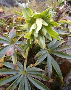A very toxic plant that is considered to be useful for reducing blood pressure in various conditions of hypertension[213]. Tthe root contains the alkaloids nervine, pseudo-nervine and veratridine[213]. It is best to harvest the root in the autumn and dry it for later use[213]. This species has similar medicinal properties to the black hellebore, H. niger[4]. These properties are:- Black hellebore is a very poisonous plant that is toxic when taken in all but the smallest doses. As such it should not be taken except under professional supervision. The plant contains cardiac glycosides which have a similar action to the foxglove (Digitalis spp) and it has been used as a heart stimulant for the elderly, though this treatment is no longer recommended[254]. The root is anthelmintic, cardiac, cathartic, diuretic, emetic, emmenagogue, irritant, violently narcotic and a drastic purgative[4, 9, 21, 46, 240]. It is harvested in the autumn and dried for later use[4]. It has been used in the treatment of dropsy, amenorrhoea, nervous disorders and hysteria, but it is very poisonous and great care must be taken over the dosage[4]. The root is also applied externally as a local irritant[4], but even this should be done with care, see notes above on toxicity. A homeopathic remedy is made from the roots[9]. It is used in the treatment of headaches, psychic disorders, enteritis and spasms[9].