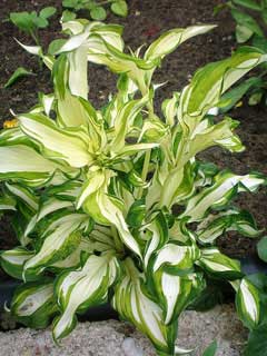 Thrives in most fertile soils if they are rich in humus[200]. Grows well in heavy clay soils and in sandy ones[208]. Very limy soils inhibit growth, but plants can thrive in such a situation if plenty of humus is added[208]. Prefers a pH between 6 and 7[200]. Requires a rich soil that does not dry out readily[1]. Succeeds in full sun as well as in deep shade, growing well in the semi-shade of a woodland[200, 233]. In general, the sunnier the position the moister the soil should be[233]. Plants are best not grown under trees in town gardens since the soot washed from the leaves of the trees in wet weather will tend to remain on the hosta[208]. Plants flower better when grown in a sunny position but the foliage is better when the plant is in a shady position[200]. Plants are in general fully hardy in Britain, but young leaves in spring can be destroyed by frost. New leaves are only produced in the spring and very early summer, so any damage at this time has a deep effect on the plant[233]. Members of this genus are rarely if ever troubled by browsing deer or rabbits[233]. Plants are very attractive to slugs and snails, the young shoots in spring are especially at risk[111, K]. A vigorous plant, forming medium sized clumps[200]. A hybrid species of garden origin, the flowers are sterile[200].
