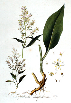 A very easily grown plant, it succeeds in most soils in sun or light shade. Plants have been surviving quite happily with us, and are still spreading freely, in dense grass that is rarely cut[K]. Dittander was formerly cultivated as a food condiment in Britain and in ancient Greece[17, 183]. It is a very invasive plant, capable of spreading more than a metre per year by means of its aggressive root system[K]. It produces new growth early in the year and so can be a useful salad ingredient in late winter[K].