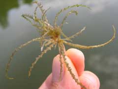 Najas marina is a PERENNIAL growing to 0.5 m (1ft 8in). It is in flower from September to November, and the seeds ripen from September to November. The species is dioecious (individual flowers are either male or female, but only one sex is to be found on any one plant so both male and female plants must be grown if seed is required). and is pollinated by Water.
