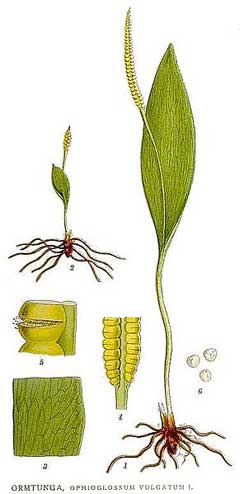 Ophioglossum vulgatum is a FERN growing to 0.3 m (1ft).