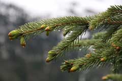 Likes abundant moisture at the roots, if grown in drier areas it must be given a deep moist soil[11]. Tolerates poor peaty soils[200]. Succeeds in wet cold and shallow soils but is not very wind-firm in shallow soils[1]. Prefers a pH between 4 to 6[200]. Dislikes shade[200]. Intolerant of atmospheric pollution[11]. Resists wind exposure to some degree[200]. Plants have a shallow root system and are easily wind-blown[155]. Often planted for its timber in N. Europe[50]. Trees are of moderate growth after a slow start, older trees often averaging over 40cm a year[185]. Trees grow better and faster in the north of Britain than in the south. This is not an easy tree to grow in Britain[1], it prefers a continental climate and, although the dormant tree is very cold hardy, the new growth in spring is very susceptible to damage by late frosts in this country[11]. Quite long-lived in its native range, with specimens 500 - 600 years old[229]. Seed production commences around the age of 20 - 25 years, with excellent crops every 2 - 6 years[229]. Closely related to P. glauca, this species also hybridizes with P sitchensis in the south of its range[226]. Plants are strongly outbreeding, self-fertilized seed usually grows poorly[200]. They hybridize freely with other members of this genus[200]. Trees should be planted into their permanent positions when they are quite small, between 30 and 90cm. Larger trees will check badly and hardly put on any growth for several years. This also badly affects root development and wind resistance[200]. In some upland areas, especially over granitic or other base-poor soils, growth rate and health have been seriously affected by aluminium poisoning induced by acid rain[200]. The crushed foliage is often said to be foetid but after the first sniff the scent is sweet and like menthol or camphor[185]. Plants are susceptible to damage by the green spruce aphid[1].