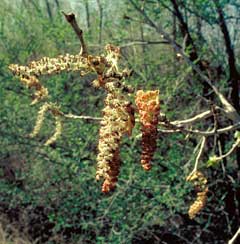 An extract of the shoots can be used as a rooting hormone for all types of cuttings. It is extracted by soaking the chopped up shoots in cold water for a day[172]. A yellow dye is obtained from the seedpods[257]. A yellow dye is obtained from the leaf buds[257]. Wood - soft, rather woolly in texture, without smell or taste, of low flammability, not durable, very resistant to abrasion[11]. It weighs about 22lb per cubic foot[235] and is used for posts, veneer, baskets and fuel[229].