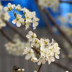 Plums are small to medium-sized deciduous stone fruit trees that include Gages (P. domestica), Damsons (P. insititia), Myrobalan plums (P. ceracifera) and Japanese plums (P. salicina). They flower early in spring, often requiring a warm, sheltered position to avoid blossom frost damage in colder areas. Rootstocks are chosen to limit their size and encourage earlier fruiting. Choose a self-fertile cultivar that does not require a cross-pollinator to set fruit if you only have one tree. Plums are propagated by grafting or budding as named cultivars will not come true from seed. Seed or cuttings are larger and slower to fruit than ones grafted onto a chosen rootstock. Bloom Color: Red, White. Main Bloom Time: Early spring, Late spring, Mid spring. Form: Rounded. The genus Prunus includes deciduous or evergreen shrubs and trees with showy spring flowers and good autumn leaf colour; some have attractive ornamental bark. Prunus includes several species developed for fruit and nut production, such as apricots, cherries, peaches, nectarines, almonds, and plums. Other species are useful in food forests for their seed and fruit. Most edible fruit from this genus is eaten raw, cooked or dried for later use. Seeds are edible, but if they are bitter, eat them in strict moderation. Several Prunus species will succeed in light shade but fruit better in a sunny position. The seeds of all members of this genus could be used for oil extraction. The extracted oil is semi-drying. Consume in small quantities if it tastes strongly of bitter almonds. Most genus members are shallow-rooted, forming a plate near the soil surface, and will produce suckers if the roots are damaged.