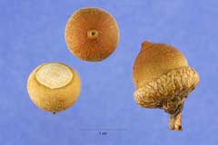A mulch of the leaves repels slugs, grubs etc, though fresh leaves should not be used as these can inhibit plant growth[20]. Oak galls are excrescences that are sometimes produced in great numbers on the tree and are caused by the activity of the larvae of different insects. The insects live inside these galls, obtaining their nutrient therein. When the insect pupates and leaves, the gall can be used as a rich source of tannin, that can also be used as a dyestuff[4]. The bark is a good source of tannin[82, 227]. Wood - coarse-grained, durable, heavy, hard, strong[43, 227, 229]. It cracks badly when left in the sun and rots when in contact with the soil[229]. It weighs 43lb per cubic foot[227]. It is not a prime timber, but is used for rough lumber, tools, furniture etc and as fuel[43, 227, 229].