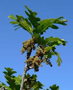 A mulch of the leaves repels slugs, grubs etc, though fresh leaves should not be used as these can inhibit plant growth[20]. Oak galls are excrescences that are sometimes produced in great numbers on the tree and are caused by the activity of the larvae of different insects. The insects live inside these galls, obtaining their nutrient therein. When the insect pupates and leaves, the gall can be used as a rich source of tannin, that can also be used as a dyestuff[4]. The seed cups are used as buttons[5]. Wood - hard, heavy, close-grained. The trees are generally too small to be of use commercially, though the wood is used locally for lumber and also makes a good fuel[229].