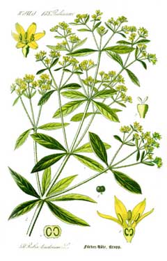 A very good quality red dye is obtained from the roots. Some reports say that 2 year old roots are used in the spring and autumn[61, 200, 238] whilst others say that 3 year old roots are used[169, 171]. The roots can be dried for later use[169]. The dye can also be extracted from the leaves[169]. This dye is also used medicinally[200]. The leaves and stem are prickly, the whorls of leaves having spines along the midrib on the underside[4]. This feature enables them to be used for polishing metalwork[4, 148].
