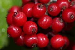 Fruit - raw or cooked[105, 161, 257]. A bitter flavour[183]. The fruit is quite nutritious, having a relatively high fat and protein as well as carbohydrate content[212]. The fruit can be dried prior to use, it will then lose some of its rank taste[183]. The fruit is about 5mm in diameter and is borne in large clusters making it easy to harvest[200]. Some caution is advised, see the notes above on toxicity. Flowers - raw or cooked. The root is made into a tea-like beverage[105, 161, 183].