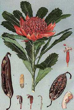 Prefers a rather poor stony soil[167]. Requires a lime-free soil[182]. Requires a sunny position in a well-drained soil that is low in phosphates[166]. Requires a lot of summer heat, abundant moisture in the growing season and a dry spell when dormant[166]. Only succeeds outdoors in the milder areas of Britain[182], requiring greenhouse protection in most parts of the country[1]. The plant is hardy to at least -7°c in Australian gardens[157], but this cannot be translated directly to British gardens due to our cooler summers and longer colder and wetter winters. Plants have been known to tolerate temperatures down to -5° in Britain, occasionally lower when in a very good position[200]. This plant is the floral emblem of New South Wales[157, 182].