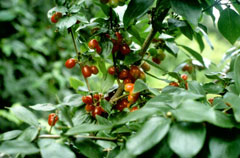 Fruit - raw, dried or used in preserves[2, 3, 7, 9, 13, 183]. Juicy, with a nice acid flavour[11]. The fully ripe fruit has a somewhat plum-like flavour and texture and is very nice eating, but the unripe fruit is rather astringent[K]. It is rather low in pectin and so needs to be used with other fruit when making jam[9]. At one time the fruit was kept in brine and used like olives[183]. The fruit is a reasonable size, up to 15mm long, with a single large seed[K]. A small amount of edible oil can be extracted from the seeds[7]. Seeds are roasted, ground into a powder and used as a coffee substitute[183].