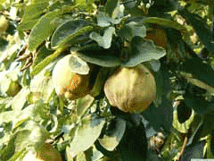 Quinces will succeed in semi-shade but with reduced fruiting. They dislike very dry or waterlogged soils. Species varieties include ‘Maliformis’, which ripens well in cooler summers; ‘Portugal’, which is vigorous with excellent fruit, ‘Smyrna’ fruit matures early; and ‘Champion’, which has smaller, mild-flavoured fruit produced in abundance. Chinese Quince (Pseudocydonia sinensis) is a similar-sized tree with low-quality fruit. Native to Iran, Iraq, North Caucasus, Tajikistan, Uzbekistan, and Transcaucasus. Introduced into many areas, including Albania, Algeria, Baleares, California, Canary Islands, Cyprus, East Aegean Islands, Greece, Italy, Libya, Madeira, Morocco, Portugal, Sardegna, Sicilia, Spain, Tunisia, Turkey, and South Australia.