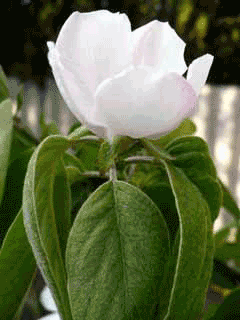 Quince is a large deciduous shrub or small tree growing to 6m (20ft) with delicious aromatic, pineapple-flavoured, pear-shaped fruit available in autumn. In warm temperate or tropical climates, the fruit is soft and juicy and suitable for eating raw. Cook before eating in colder climates as it remains hard and astringent. Use the fruit in jellies, jams, pies and preserves. It is rich in pectin. The cooked fruit adds a delicious flavour to cooked apples. Make an aromatic drink by adding the dried crushed seed to water, simmering for 5 minutes and sweetening to taste. The attractive pale pink blossoms are edible. A companion plant in orchards to attract pollinators and beneficial insects.