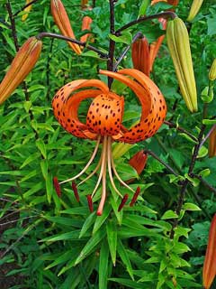 Lilium lancifolium is a BULB growing to 1.2 m (4ft) by 0.3 m (1ft in) at a medium rate.