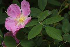 Rosa acicularis is a very cold-hardy plant, being able to tolerate temperatures down to around -40°c when fully dormant[200]. Succeeds in most soils[11], preferring a circumneutral soil and a sunny position[200]. Prefers a slightly acid soil[14]. Grows well in heavy clay soils. Dislikes water-logged soils[200]. Grows well with alliums, parsley, mignonette and lupins[18, 20]. Garlic planted nearby can help protect the plant from disease and insect predation[18, 20]. Grows badly with boxwood[18]. The flowers are fragrant[11]. Hybridizes freely with other members of this genus[80]. Produces its fruit abundantly in Britain[11]. This plant is the floral emblem of Alberta[101]. Plants in this genus are notably susceptible to honey fungus[200].