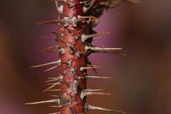 Seed. Rose seed often takes two years to germinate. This is because it may need a warm spell of weather after a cold spell in order to mature the embryo and reduce the seedcoat[80]. One possible way to reduce this time is to scarify the seed and then place it for 2 - 3 weeks in damp peat at a temperature of 27 - 32°c (by which time the seed should have imbibed). It is then kept at 3°c for the next 4 months by which time it should be starting to germinate[80]. Alternatively, it is possible that seed harvested 'green' (when it is fully developed but before it has dried on the plant) and sown immediately will germinate in the late winter. This method has not as yet(1988) been fully tested[80]. Seed sown as soon as it is ripe in a cold frame sometimes germinates in spring though it may take 18 months. Stored seed can be sown as early in the year as possible and stratified for 6 weeks at 5°c[200]. It may take 2 years to germinate[200]. Prick out the seedlings into individual pots when they are large enough to handle. Plant out in the summer if the plants are more than 25cm tall, otherwise grow on in a cold frame for the winter and plant out in late spring. Cuttings of half-ripe wood with a heel, July in a shaded frame. Overwinter the plants in the frame and plant out in late spring[78]. High percentage[78]. Cuttings of mature wood of the current seasons growth. Select pencil thick shoots in early autumn that are about 20 - 25cm long and plant them in a sheltered position outdoors or in a cold frame[78, 200]. The cuttings can take 12 months to establish but a high percentage of them normally succeed[78]. Division of suckers in the dormant season. Plant them out direct into their permanent positions. Layering. Takes 12 months[11].
