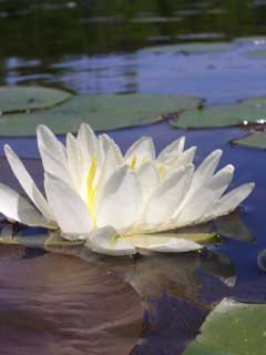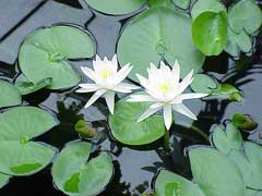 A water plant requiring a rich soil and a sunny position in still or slowly flowing water that is at least 30cm deep[55, 200, 238]. An over-rich soil, or growing the plant in water that is too deep, inhibits flowering[238]. Prefers a pH between 6 and 7[200]. There are two basic types of plant in this genus (this species is a crawler):- 'crawlers' are species with horizontal roots that often spread freely, with new plants being formed at intervals along the root. These species are useful for naturalising, but they do not flower very freely in the cool summers of Britain[214]. 'clumpers' have vertical roots, they form slowly spreading clumps and produce offsets around the crown. These forms flower much more freely in Britain[214]. A very ornamental plant[1], the sweetly fragrant flowers are 12cm in diameter[222]. The flowers open in the morning, when they are at their most fragrant, and close in the afternoon[245].